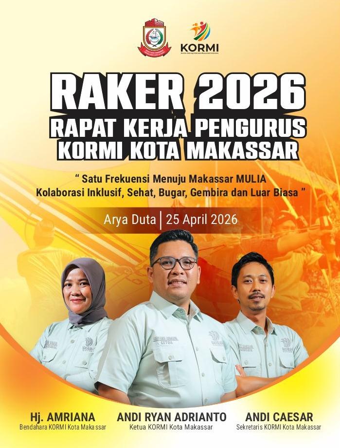 UNGKAPAN, MAKASSAR – Satu Frekuensi Menuju Makassar Mulia adalah tema yang diangkat dalam Rapat Kerja (Raker) 2026 yang digelar Komite Olahraga Rekreasi Masyarakat Indonesia (KORMI) Makassar. Pertemuan ini akan berlangsung di salah satu hotel di Makassar pada 25 April 2026.