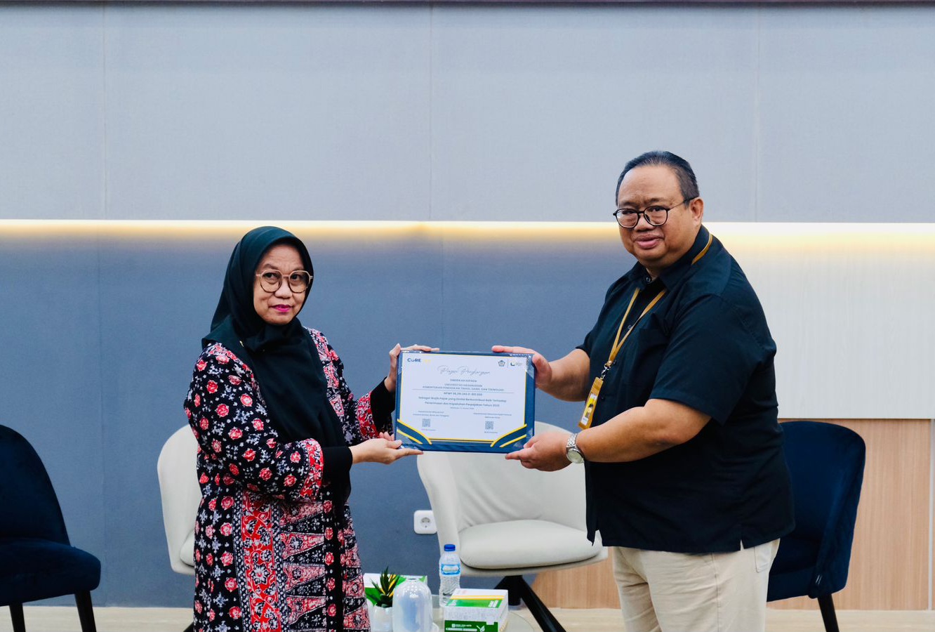 Piagam penghargaan diserahkan langsung kepada Direktur Keuangan UNHAS sebagai bentuk apresiasi atas peran aktif universitas dalam mendukung kepatuhan perpajakan.