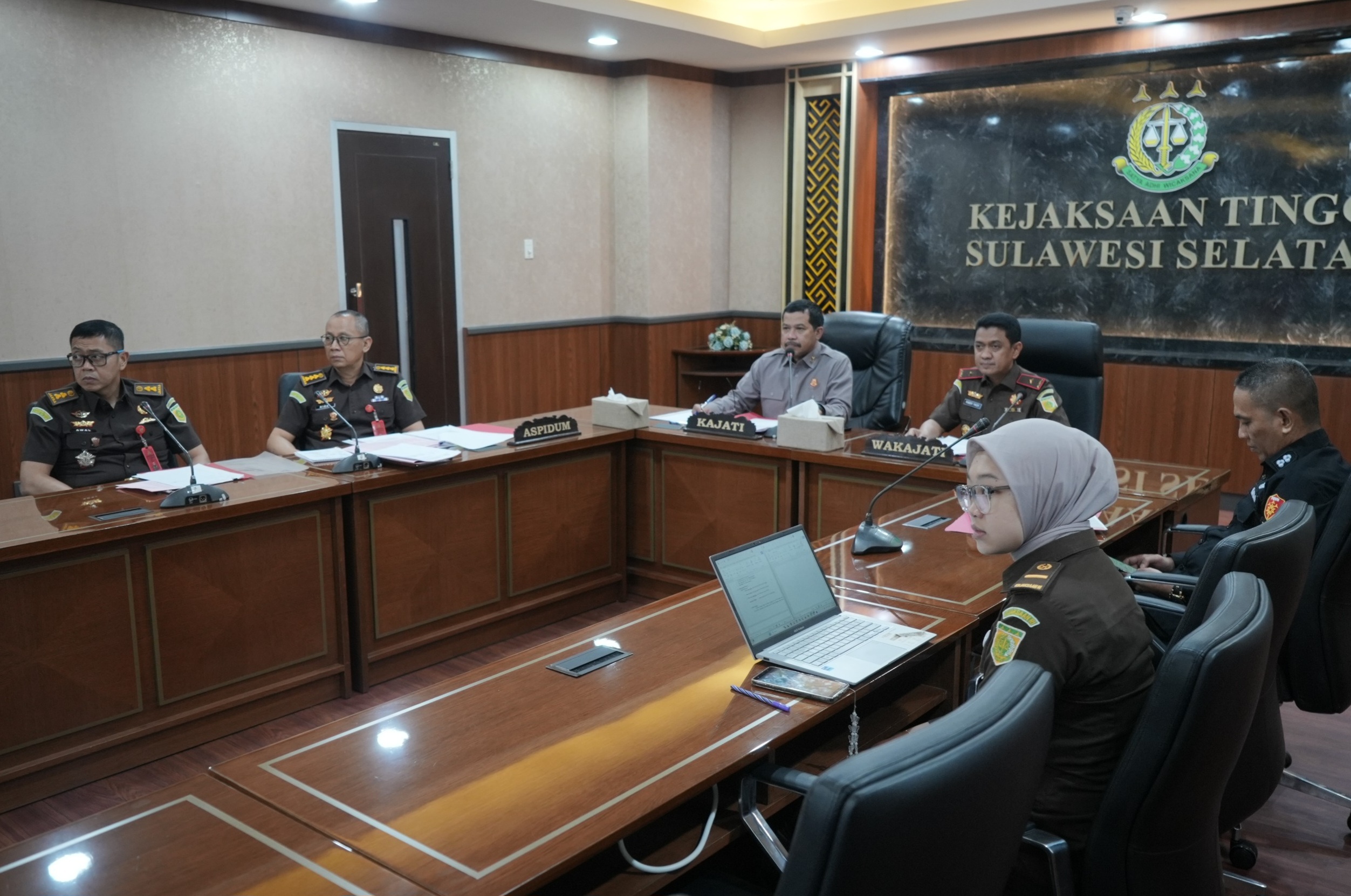 UNGKAPAN, MAKASSAR – Kepala Kejaksaan Tinggi Sulawesi Selatan (Sulsel) Agus Salim, didampingi Wakajati Sulsel Robert M Tacoy, Aspidum Rizal Syah Nyaman dan jajaran Pidum melakukan ekspose penghentian penuntutan berdasarkan keadilan restoratif (Restorative Justice/RJ) dari Kejari Bone di Kejati Sulsel, Selasa (30/09/2025).