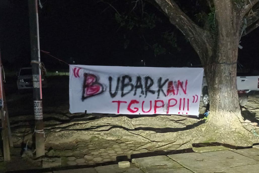 Spanduk Bubarkan TGUPP Terbentang di Depan Kantor Gubernur